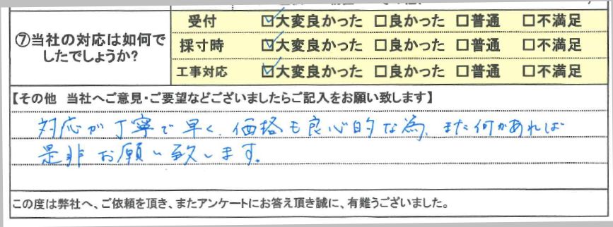 お客様より頂きましたご評価を基に、社員一同、お客様に満足頂けます様、努めて参ります